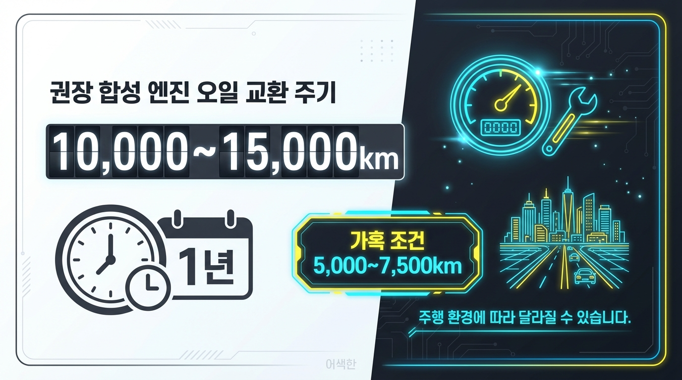 합성유 엔진오일의 교환주기는 여러 요인에 따라 달라집니다. 일반적인 권장 기준과 함께 상황별 교환주기를 정리했습니다. 📅